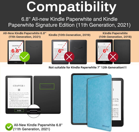 Compatible with Kindle Paperwhite 11Th Generation 2021 Leather Case with Hand Strap Leather Cover Cases for Kindle Paperwhite 11Th 2021 and Kindle Paperwhite Signature Edition 2021(Lightblue)