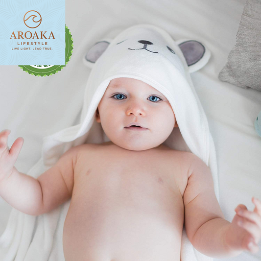 Bamboo Rayon Hooded Bath Towel with Bear Ears for Infants and Toddlers - Absorbent Large 30 x 30 Inch Baby Towel