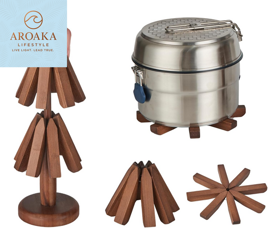 Elevate Your Kitchen with the CUIYAKI Set of 3 Stylish Bamboo Trivets - Perfect for Hot Dishes and Easy Storage