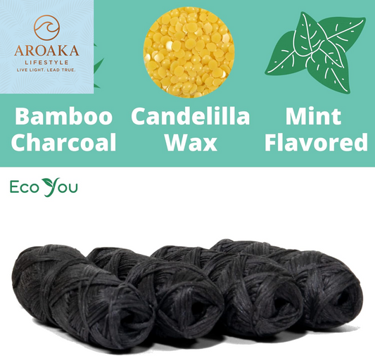 Eco-Friendly Bamboo Charcoal Dental Floss with Refreshing Mint - Vegan & Biodegradable (4 Refill Spools)